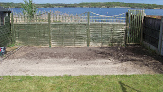 Well. Had another good day in the garden. Took up the stone path around what was the bark chippings area, and the log-roll, too. I also finished off the border and when that had been raked through and de-weeded, I put some of the bark from the bottom, in the border area. So that looks nice.